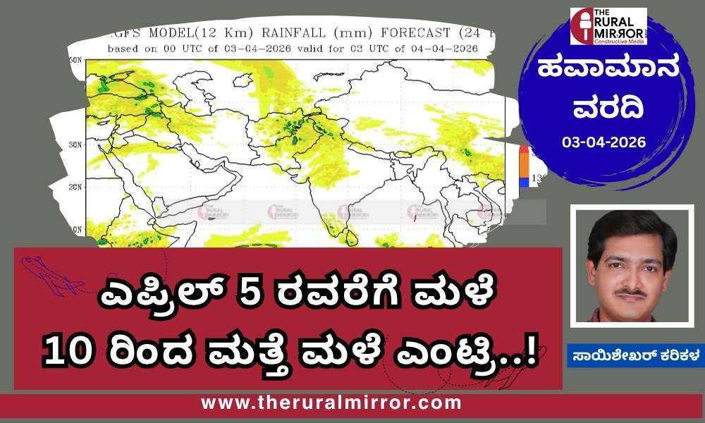 ಹವಾಮಾನ ವರದಿ | 03-04-2026 | ಕರ್ನಾಟಕದಲ್ಲಿ ಗುಡುಗು-ಮಳೆಯ ಸರಣಿ | ಎ.5 ರಿಂದ ವಿರಾಮ, 10 ರಿಂದ ಮಳೆ ವಾಪಸ್..!