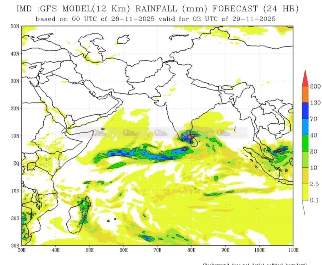 ಉತ್ತರ ಶ್ರೀಲಂಕಾ ತಲುಪಿರುವ “ದಿತ್ವಾ” ಚಂಡಮಾರುತವು ನ. 29ರಂದು ತಮಿಳುನಾಡು ಕರಾವಳಿ ತೀರಕ್ಕೆ ಆಗಮಿಸುವ ನಿರೀಕ್ಷೆ ಇದೆ. 30 ಅಥವಾ ಡಿ. 1 ರಂದು ಆಂದ್ರಾ ತೀರದಲ್ಲಿ ಶಿಥಿಲಗೊಳ್ಳುವ ಲಕ್ಷಣಗಳಿವೆ.