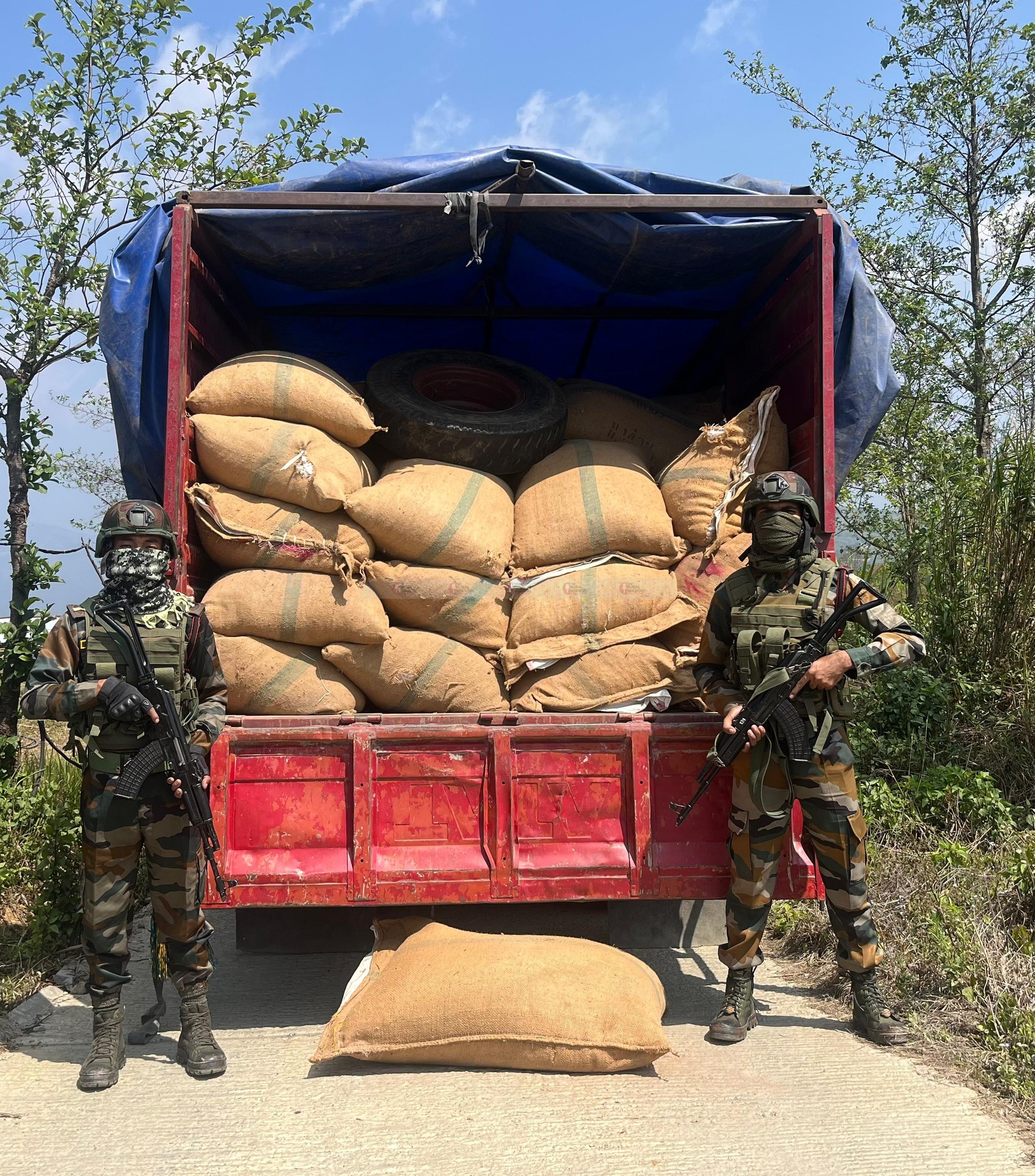 Assam Rifles, along with the Customs Preventive Force, seized 98 bags of areca nuts weighing 7,840 kg worth ₹54.88 lakh in Champhai district of Mizoram. The operation reflects ongoing efforts to curb illegal smuggling along the Indo-Myanmar border.