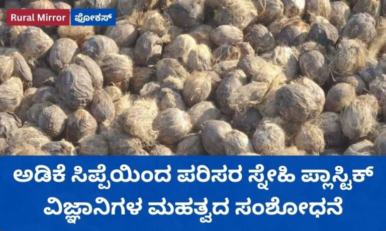 ಪರಿಸರದ ದೃಷ್ಟಿಯಿಂದ ಮಹತ್ವ :ಪೆಟ್ರೋಲಿಯಂ ಆಧಾರಿತ ಪ್ಲಾಸ್ಟಿಕ್ಗಳು ದೀರ್ಘಕಾಲ ಪರಿಸರದಲ್ಲಿ ಉಳಿಯುವರೆಗೂ, ಅಡಿಕೆ ತೊಗಟೆಯಿಂದ ತಯಾರಿಸಿದ ಈ ಬಯೋಡಿಗ್ರೇಡೆಯಬಲ್ ಪ್ಲಾಸ್ಟಿಕ್ಗಳು ಪರಿಸರ ಮಾಲಿನ್ಯ ಕಡಿಮೆ ಮಾಡುವ ಪರಿಣಾಮಕಾರಿ ಪರ್ಯಾಯವಾಗಬಹುದು ಎಂದು ಸಂಶೋಧಕರು ಅಭಿಪ್ರಾಯಪಟ್ಟಿದ್ದಾರೆ. ಪ್ರತಿದಿನ ಕೃಷಿ-ಗ್ರಾಮೀಣ-ಪರಿಸರ ಹಾಗೂ ಇತರ ಮಾಹಿತಿಗಾಗಿ ನಮ್ಮ “ದ ರೂರಲ್ ಮಿರರ್.ಕಾಂ”WhatsApp Channel ಗೆ ಇಲ್ಲಿ ಕ್ಲಿಕ್ ಮಾಡಿ