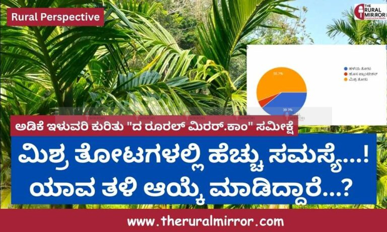 ಈ ಹಿನ್ನೆಲೆಗಳಲ್ಲಿ “ದ ರೂರಲ್ ಮಿರರ್.ಕಾಂ” ನಡೆಸಿದ ರೈತರ ಸರ್ವೆಯ ಮಾಹಿತಿಯನ್ನು ಆಧರಿಸಿ ಈ ವಿಶೇಷ ವರದಿ ಅಡಿಕೆ ಕೃಷಿಯ ಪ್ರಸ್ತುತ ಸ್ಥಿತಿಯನ್ನು ವಿಶ್ಲೇಷಿಸುತ್ತದೆ.