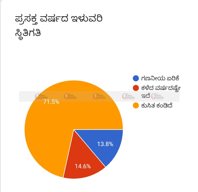 ಇಳುವರಿ ಕುಸಿತ : ಬಹುತೇಕ ರೈತರ ಅನುಭವ : ಸಮೀಕ್ಷೆಯಲ್ಲಿ ಭಾಗವಹಿಸಿದ ಒಟ್ಟು ಬೆಳೆಗಾರರಲ್ಲಿ