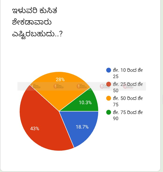 ಈ ಬಾರಿಯ ಅಡಿಕೆ ಇಳುವರಿಯ ಕುರಿತು ದ ರೂರಲ್ ಮಿರರ್.ಕಾಂ ವತಿಯಿಂದ ಸಮೀಕ್ಷೆ ನಡೆಸಲಾಗಿತ್ತು. ಈ ಸಮೀಕ್ಷೆಗೆ ಒಟ್ಟು 123 ಮಂದಿ ಅಡಿಕೆ ಕೃಷಿಕರು ಸ್ಪಂದಿಸಿ ತಮ್ಮ ಅಭಿಪ್ರಾಯ ಮತ್ತು ಅನುಭವಗಳನ್ನು ಹಂಚಿಕೊಂಡಿದ್ದಾರೆ.