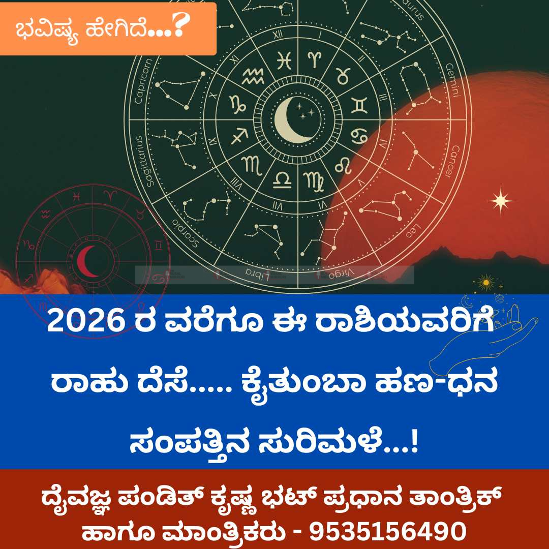 ಸಾಮಾನ್ಯವಾಗಿ ರಾಹು ದಶೆ ಅಂದ್ರೆ ಜನರಿಗೆ ಆತಂಕವಾಗಬಹುದು, ಆದರೆ ಕೆಲವು ರಾಶಿಗಳಿಗೆ ರಾಹು ಅನೇಕ ಆಶ್ಚರ್ಯಕರ ಲಾಭಗಳನ್ನು ತರುತ್ತದೆ – ವಿಶೇಷವಾಗಿ ಹಣ, ಪರಕ್ರೀಯೆ ವ್ಯಾಪಾರ, ವಿದೇಶ ಸಂಪರ್ಕ, ಮತ್ತು ತಂತ್ರಜ್ಞಾನ ಕ್ಷೇತ್ರಗಳಲ್ಲಿ.…..ಮುಂದೆ ಓದಿ….
