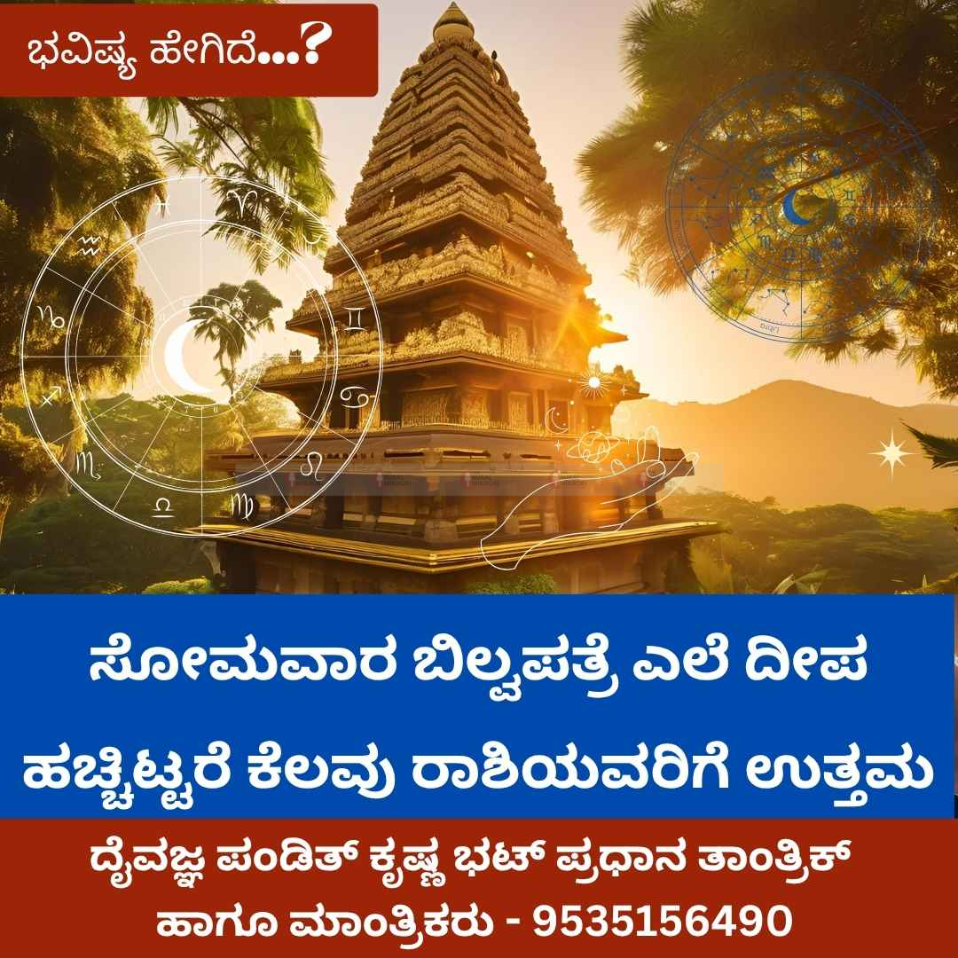 - ಮೀನ (ಮೀನ राशि / Pisces): ಮೀನ ರಾಶಿಯವರಿಗೆ ಸೋಮವಾರ ದೀಪ ಹಚ್ಚಿ ಬಿಲ್ವಪತ್ರ ಅರ್ಪಿಸುವುದು ಭಕ್ತಿ, ಧ್ಯಾನ ಮತ್ತು ಆಧ್ಯಾತ್ಮಿಕ ಉನ್ನತಿಯ ದಾರಿ ತೆಗೆಯುತ್ತದೆ. ಅದೃಷ್ಟ, ಮನೋಶಾಂತಿ ಮತ್ತು ಆರೋಗ್ಯದಲ್ಲಿ ಸುಧಾರಣೆ ಕಂಡುಬರುತ್ತದೆ.