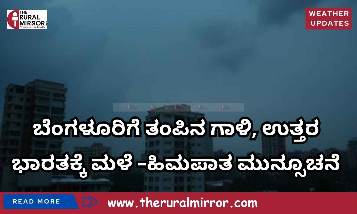 ಬೆಂಗಳೂರು ಮತ್ತು ರಾಜ್ಯಾದ್ಯಾಂತ ಬಿಸಿಲು ಹಾಗೂ ತಂಪಾದ ಹವಾಮಾನ ಮುಂದುವರಿದಿದ್ದು, ಮಳೆಯ ಸಾಧ್ಯತೆ ಕಡಿಮೆ ಇದ್ದರೂ, ಗಾಳಿ ಹಾಗೂ ತಾಪಮಾನ ಎರಡೂ ಕಡಿಮೆಯಾಗಿರುವ ಕಾರಣ ತಂಪಾಗಿ ಭಾಸವಾಗುತ್ತದೆ. IMD- ಪ್ರಕಾರ ಉತ್ತರ ಭಾರತದಲ್ಲಿನ ಹಲವಾರು ಭಾಗಗಳು ತುಂತುರು ಮಳೆ ಹಾಗೂ ಕೆಲವು ಪರ್ವತ ಪ್ರದೇಶಗಳಲ್ಲಿ ಹಿಮಪಾತ ಕಂಡುಬರುವ ಸಾಧ್ಯತೆ ಇದೆ. ಮುಂಜಾನೆ ಮತ್ತು ರಾತ್ರಿ ವೇಳೆ ವಿಪರೀತ ಕಾರಣದಿಂದಾಗಿ ರಸ್ತೆ ಸಂಚಾರ ಹಾಗೂ ವಿಮಾನ ಸೇವೆಗಳಿಗೆ ಜಾಗೃತಿ ಅಗತ್ಯ. ತಾಪಮಾನವು ದೆಹಲಿಯಲ್ಲಿ ಕನಿಷ್ಠ ತಾಪಮಾನ 6-10°C ಮತ್ತು ಗರಿಷ್ಠ 20-22°C ಸಾಧ್ಯತೆ ಇದ್ದರೆ ಬೆಂಗಳೂರಿನಲ್ಲಿ ಹಗಲು ತಾಪಮಾನ ಹಗಲು 24°C ಆದರೂ ರಾತ್ರಿ ತಂಪಾಗುತ್ತದೆ. ಸದ್ಯ ಮಳೆಯ ಲಕ್ಷಣ ಇಲ್ಲ. ಪ್ರತಿದಿನ ಕೃಷಿ-ಗ್ರಾಮೀಣ-ಪರಿಸರ ಹಾಗೂ ಇತರ ಮಾಹಿತಿಗಾಗಿ ನಮ್ಮ “ದ ರೂರಲ್ ಮಿರರ್.ಕಾಂ”WhatsApp Channel ಗೆ ಇಲ್ಲಿ ಕ್ಲಿಕ್ ಮಾಡಿ