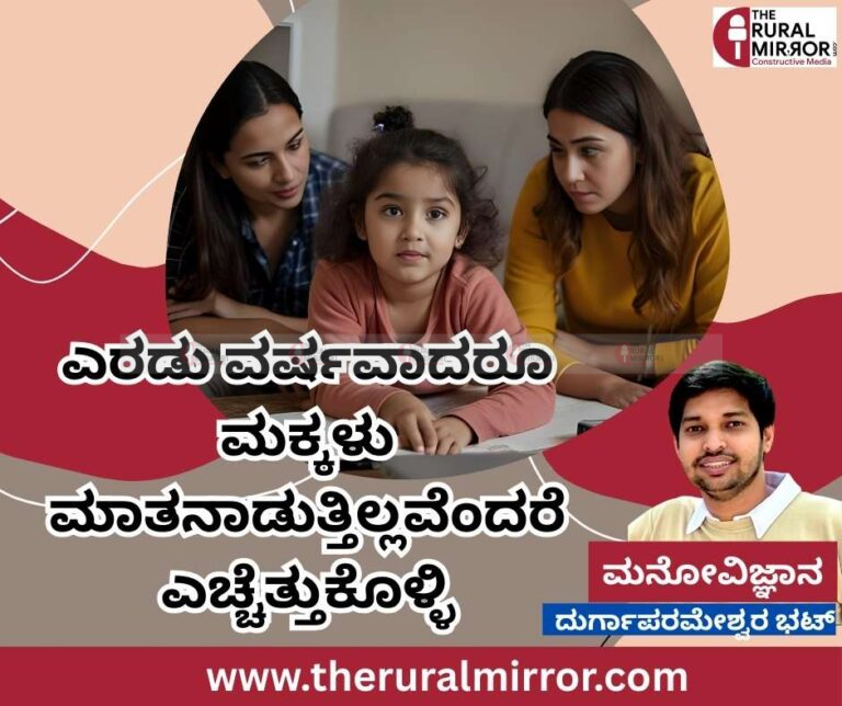 ಹಾಗೆಯೇ ಅನುವಂಶೀಯ ಹೊರತಾಗಿ ಆಧುನಿಕ ಜಗತ್ತಿನಲ್ಲಿ ಪಾಲಕರೇ ಸಮಸ್ಯೆಗಳನ್ನು ಆಹ್ವಾನಿಕೊಳ್ಳುವುದು ಇದೆ. ಮಕ್ಕಳ ತಾತ್ಕಾಲಿಕ ಸಮಾಧಾನಕ್ಕೆಂದು ಮೊಬೈಲ್ ನೀಡುವುದು. ಮೊಬೈಲ್ ನೋಡುತ್ತಲೇ ಮಕ್ಕಳು ಮೌನಕ್ಕೆ ಜಾರುವ ಸಾಧ್ಯತೆಗಳು ಇರುತ್ತದೆ. ಸ್ಕ್ರೀನ್ ಟೈಮ್ ಹೆಚ್ಚಾದಂತೆ ಮಾತನಾಡುವ ಗುಣ ಹಾಗೂ ಸಾಮಾಜಿಕವಾಗಿ ಬೆರೆಯುವ ಗುಣ ಕಡಿಮೆಯಾಗುತ್ತದೆ. ಮಕ್ಕಳು ಮಾತನಾಡಬೇಕೆಂದರೆ ಪಾಲಕರು ಅತಿ ಹೆಚ್ಚು ಸಮಯ ಕೊಟ್ಟು ಮಾತನಾಡಿಸುವುದು ಒಳ್ಳೆಯದು. ಅಷ್ಟು ಮಾತ್ರವಲ್ಲದೆ ಪಾಲಕರ ಹೆಚ್ಚಿನ ಸ್ನೇಹಿತರ ಒಡನಾಟ ಇರಬೇಕು. ಇದು ಕೇವಲ ಮಗು ಇರುವ ಪ್ರದೇಶದಲ್ಲಿ ಮಾತ್ರವಲ್ಲದೆ ಮಗುವನ್ನು ಅದರ ಮನೆಯ ವಾತಾವರಣದಿಂದ ಹೊರಗಡೆ ಕರೆದುಕೊಂಡು ಹೋಗಿ ಸಮಾಜದಲ್ಲಿ ಅತಿ ಹೆಚ್ಚು ಬೆರೆಯುವಂತ ವಾತಾವರಣವನ್ನು ಕಲ್ಪಿಸಿ. ಜಾತ್ರೆ, ದೇವಸ್ಥಾನ , ಜನ ಜಂಗುಳಿ ಸೇರುವ, ಸೇರಿ ನಮ್ಮ ಮಗುವನ್ನು ಮಾತನಾಡಿಸಬಲ್ಲ ವಾತಾವರಣಕ್ಕೆ ಕರೆದುಕೊಂಡು ಹೋಗಿ. ನೀವು ಗಮನಿಸಿರಬಹುದು. ವಿವಿಧ ಸಂಘಟನೆಯಲ್ಲಿರುವ ವ್ಯಕ್ತಿಗಳ ಮಕ್ಕಳ ಭಾಗವಹಿಸುವಿಕೆಯಿಂದ ಮಕ್ಕಳು ಚುರುಕಾಗಿ ಮಾತನಾಡಲು ಕಲಿತಿರುತ್ತಾರೆ. ನಮ್ಮ ಭಾಗವಹಿಸುವಿಕೆಯೇ ಮಕ್ಕಳ ಪ್ರಗತಿ ಎಂಬುವುದನ್ನು ಮನಗಾಣೋಣ. ಪ್ರತಿದಿನ ಕೃಷಿ-ಗ್ರಾಮೀಣ-ಪರಿಸರ ಹಾಗೂ ಇತರ ಮಾಹಿತಿ ಮತ್ತು ನ್ಯೂಸ್ ಎಲರ್ಟ್ ಗಾಗಿ ನಮ್ಮ WhatsApp Channel ಗೆ ಇಲ್ಲಿ ಕ್ಲಿಕ್ ಮಾಡಿ ಸೇರಿಕೊಳ್ಳಿ…