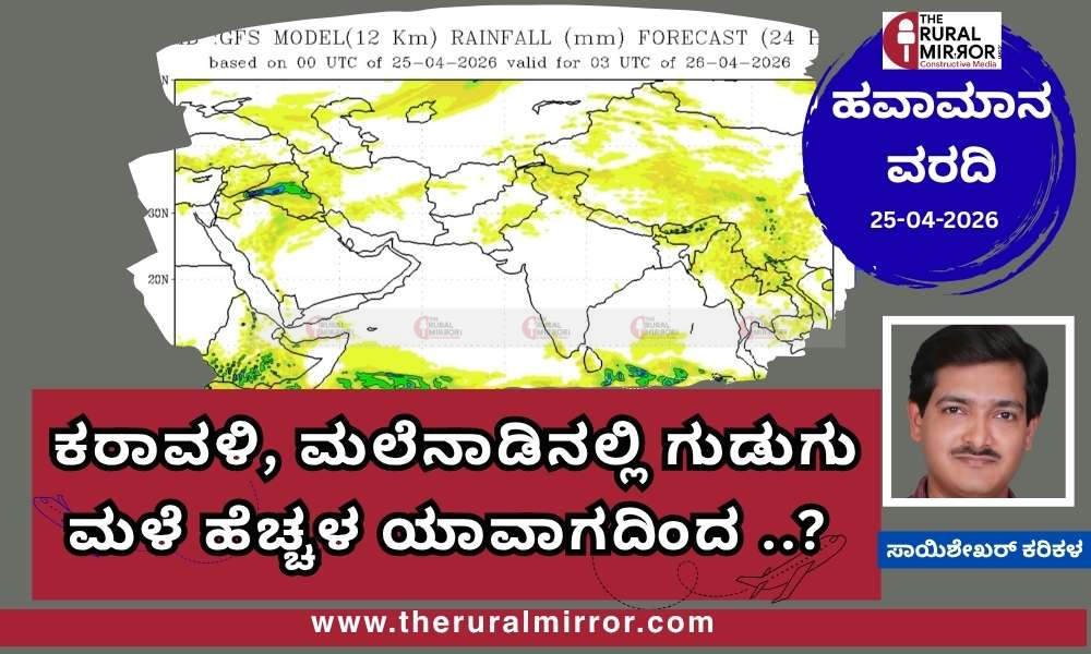 ಹವಾಮಾನ ವರದಿ | 25-04-2026 | ಕರಾವಳಿ, ಮಲೆನಾಡಿನಲ್ಲಿ ಗುಡುಗು ಮಳೆ – ಮಳೆ ಹೆಚ್ಚಳ ಯಾವಾಗಿನಿಂದ…?