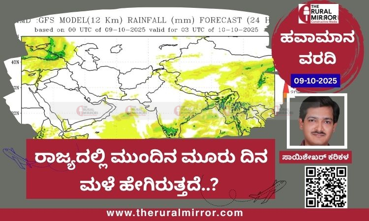 ಹವಾಮಾನ ವರದಿ | 09-10-2025 | ಅ.12 ರವರೆಗೆ ರಾಜ್ಯದ ವಿವಿದೆಡೆ ಮಳೆ ಸಾಧ್ಯತೆ
