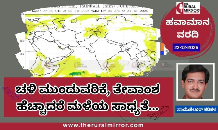 ಹವಾಮಾನ ಇಲಾಖೆ | 22-12-2025 | ಚಳಿ ಮುಂದುವರಿಕೆ, ತೇವಾಂಶ ಹೆಚ್ಚಾದರೆ ಮಳೆಯ ಸಾಧ್ಯತೆ…