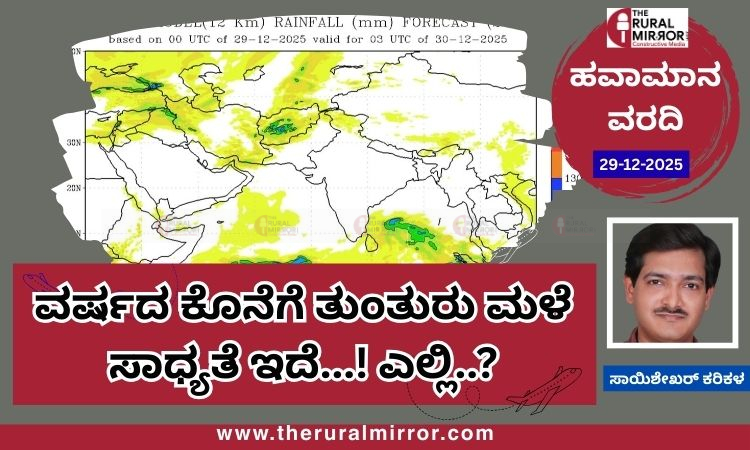 ಹವಾಮಾನ ವರದಿ | 29-12-2025 | ವರ್ಷದ ಕೊನೆಗೆ ತುಂತುರು ಮಳೆ ಸಾಧ್ಯತೆ ಇದೆ…! ಎಲ್ಲಿ..?