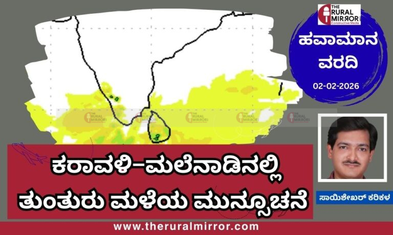 ಹವಾಮಾನ ವರದಿ | 02-02-2026 | ಕರಾವಳಿ–ಮಲೆನಾಡಿನಲ್ಲಿ ತುಂತುರು ಮಳೆಯ ಮುನ್ಸೂಚನೆ