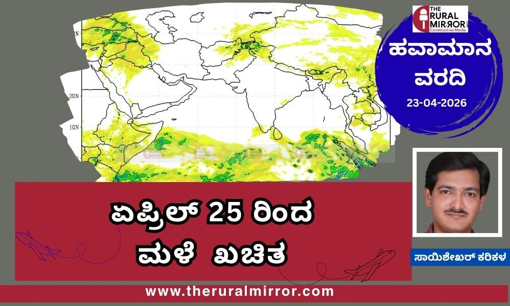 ಹವಾಮಾನ ವರದಿ | 23-04-2026 | ಏಪ್ರಿಲ್ 25 ರಿಂದ ಮಳೆಯ ಸಾಧ್ಯತೆ ಹೆಚ್ಚು