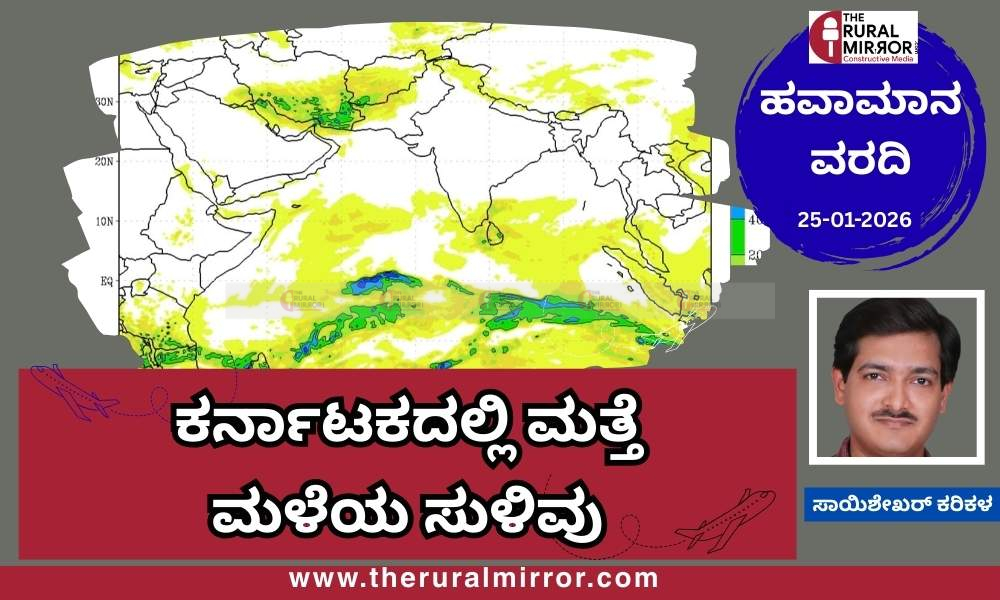 ಹವಾಮಾನ ವರದಿ | 25-01-2026 | ಕರಾವಳಿ–ಮಲೆನಾಡಿನಲ್ಲಿ ಗುಡುಗು ಸಹಿತ ಮಳೆ ಸಾಧ್ಯತೆ