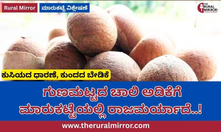 ಒಟ್ಟಾರೆಯಾಗಿ, ಚಾಲಿ ಅಡಿಕೆ ಮಾರುಕಟ್ಟೆ ಸದ್ಯಕ್ಕೆ ಯಾವುದೇ ಆತಂಕವಿಲ್ಲದೆ ಸಾಗುತ್ತಿದ್ದು, ಗುಣಮಟ್ಟದ ಫಸಲು ಹೊಂದಿರುವ ಬೆಳೆಗಾರರಿಗೆ ಮಾರುಕಟ್ಟೆಯಲ್ಲಿ ಉತ್ತಮ ದರ ಸಿಗುತ್ತಿರುವುದು ಸುಳ್ಳಲ್ಲ. ಪ್ರತಿದಿನ ಕೃಷಿ-ಗ್ರಾಮೀಣ-ಪರಿಸರ ಹಾಗೂ ಇತರ ಮಾಹಿತಿಗಾಗಿ ನಮ್ಮ “ದ ರೂರಲ್ ಮಿರರ್.ಕಾಂ”WhatsApp Channel ಗೆ ಇಲ್ಲಿ ಕ್ಲಿಕ್ ಮಾಡಿ