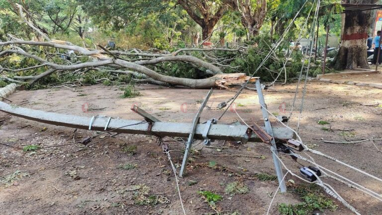 Heavy rainfall in Chikkamagaluru district has caused widespread disruption, with trees and electric poles uprooted in several areas. Power outages have affected many villages. The India Meteorological Department has forecast continued rain with strong winds for the next four days, urging residents to stay cautious.