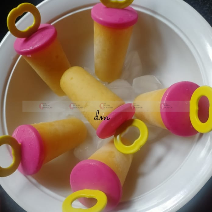 ಬಿಸಿ ಮಾಡಿ ಆರಿಸಿದ ತಣ್ಣನೆ ಆದ ಹಾಲಿಗೆ ಹಾಕಿ ಮಿಕ್ಸ್ ಮಾಡಿ ಐಸ್ ಕ್ಯಾಂಡಿ ಮೌಲ್ಡ್ ಗೆ ಹಾಕಿ 6 ಗಂಟೆ ಕಾಲ ಗಟ್ಟಿ ಆಗಲು ಬಿಡಿ ನಂತರ ಸವಿಯಬಹುದು.
