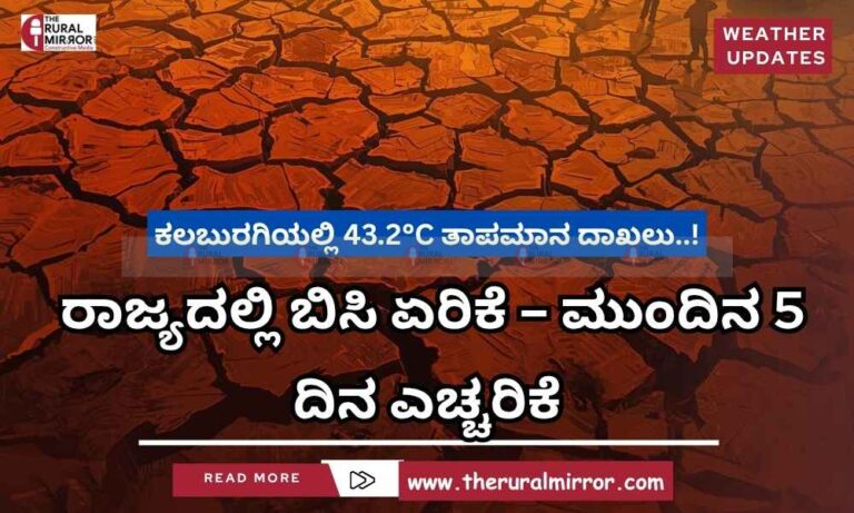 ಇದೀಗ ರಾಜ್ಯದ ಗರಿಷ್ಠ ತಾಪಮಾನ ಕಲಬುರಗಿಯಲ್ಲಿ 43.2 ಡಿಗ್ರಿ ಸೆಲ್ಸಿಯಸ್ ದಾಖಲಾಗಿದ್ದು, ಈ ಬೇಸಿಗೆಯಲ್ಲಿ ಉಷ್ಣಾಂಶ ಏರಿಕೆಯ ತೀವ್ರತೆ ಹೆಚ್ಚುತ್ತಿರುವುದನ್ನು ಸೂಚಿಸುತ್ತದೆ.