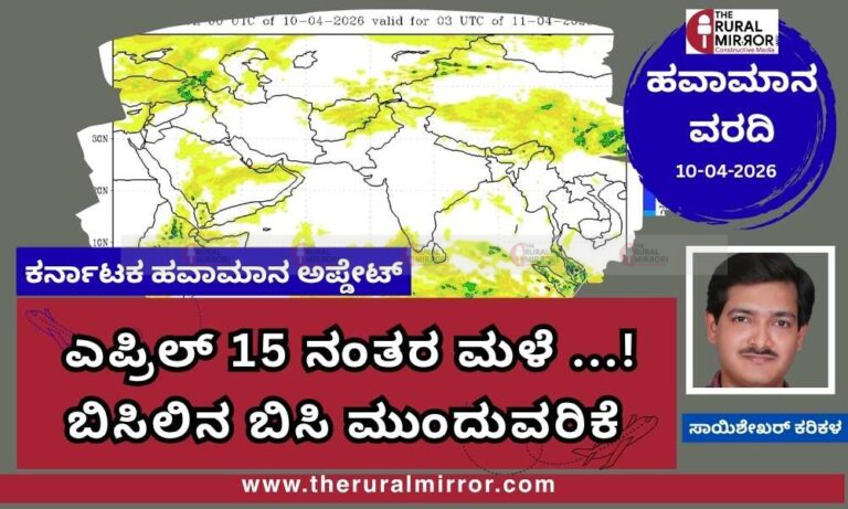 ದಕ್ಷಿಣ ಒಳನಾಡಿನಲ್ಲಿ ಗುಡುಗು ಮಳೆಯ ಸಾಧ್ಯತೆ ಇದೆ. ಕರಾವಳಿ ಮತ್ತು ಉತ್ತರ ಒಳನಾಡಿನಲ್ಲಿ…