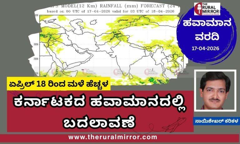 ಕರ್ನಾಟಕದಲ್ಲಿ ಏಪ್ರಿಲ್ 18ರಿಂದ ಹಂತ ಹಂತವಾಗಿ ಮಳೆಯ ಚಟುವಟಿಕೆ ಆರಂಭವಾಗುವ ಸಾಧ್ಯತೆ ಇದೆ.…