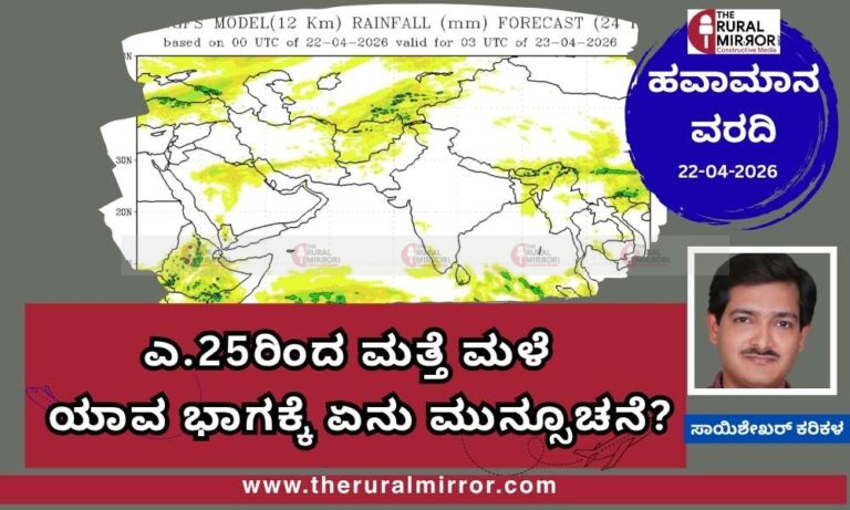 ಏಪ್ರಿಲ್ 24ರವರೆಗೆ ಮಳೆ ಕಡಿಮೆ, ಆದರೆ 25ರಿಂದ ಮಳೆಯ ಚಟುವಟಿಕೆ ಹೆಚ್ಚಾಗಲಿದೆ.