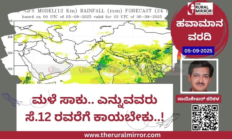 ಬಂಗಾಳಕೊಲ್ಲಿಯ ವಾಯುಭಾರ ಕುಸಿತವು ಒಡಿಸ್ಸಾ ಮೂಲಕ ಪ್ರವೇಶಿಸಿ ಮಧ್ಯಪ್ರದೇಶ, ರಾಜಸ್ತಾನ ಮೂಲಕ ಇವತ್ತು ಗುಜರಾತ್ ಪ್ರವೇಶಿಸಲಿದೆ. ಇವತ್ತು ಮಹಾರಾಷ್ಟ್ರದ ಮುಂಬೈ ಸುತ್ತಮುತ್ತ ಹಾಗೂ ಉತ್ತರ ಗುಜರಾತ್ ನ ಬಹುತೇಕ ಭಾಗಗಳಲ್ಲಿ ಉತ್ತಮ ಮಳೆಯ ಮುನ್ಸೂಚೆನೆ ಇದೆ. ಉತ್ತರ ಗುಜರಾತ್, ರಾಜಸ್ತಾನ ಗಡಿ ಭಾಗಗಳಲ್ಲಿ ಸೆಪ್ಟೆಂಬರ್ 7ರ ತನಕ ಉತ್ತಮ ಮಳೆಯ ಮುನ್ಸೂಚನೆ ಇದೆ. ಪ್ರತಿದಿನ ಕೃಷಿ-ಗ್ರಾಮೀಣ-ಪರಿಸರ ಹಾಗೂ ಇತರ ಮಾಹಿತಿಗಾಗಿ ನಮ್ಮ “ದ ರೂರಲ್ ಮಿರರ್.ಕಾಂ”WhatsApp Channel ಗೆ ಇಲ್ಲಿ ಕ್ಲಿಕ್ ಮಾಡಿ