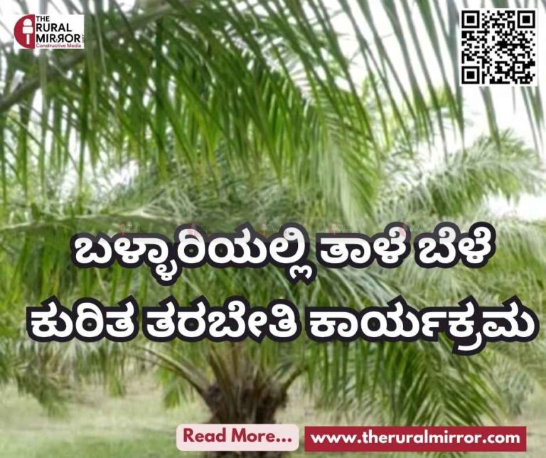 ಬಳ್ಳಾರಿ ಜಿಲ್ಲಾ ಪಂಚಾಯಿತಿ, ತೋಟಗಾರಿಕೆ ಇಲಾಖೆ, ಹಗರಿ ಕೃಷಿ ವಿಜ್ಞಾನ ಕೇಂದ್ರದ ಸಹಯೋಗದಲ್ಲಿ ತಾಳೆ ಬೆಳೆ ಬೇಸಾಯ ಕುರಿತು ತರಬೇತಿ ಮತ್ತು ಅರಿವು ಕಾರ್ಯಕ್ರಮ ಬಳ್ಳಾರಿಯ ಯರ್ರಗುಡಿ ಗ್ರಾಮದಲ್ಲಿ ನಡೆಯಿತು.