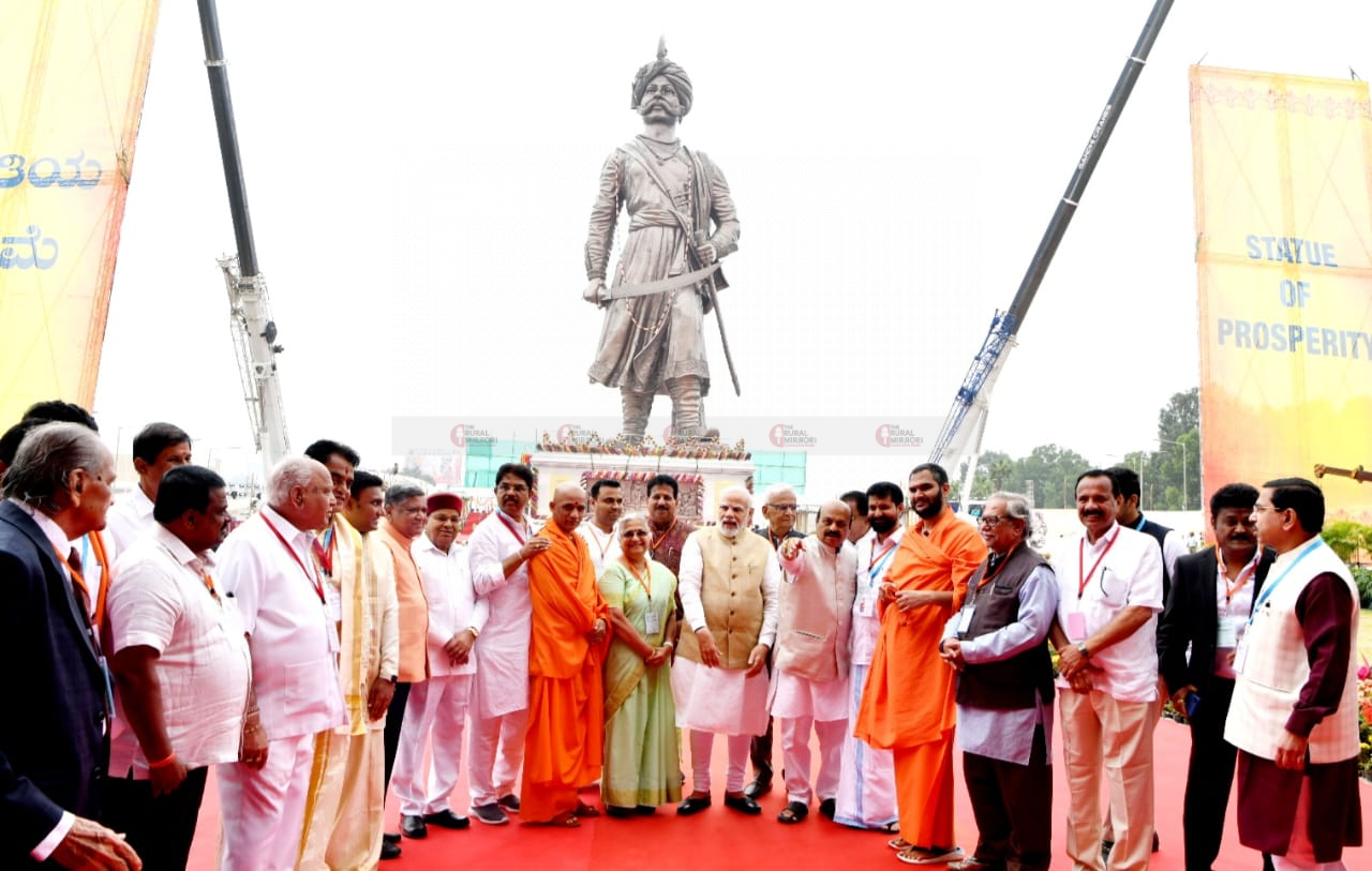 ಬೆಂಗಳೂರು ನಿರ್ಮಾತೃ ನಾಡಪ್ರಭು ಕೆಂಪೇಗೌಡ ಪ್ರತಿಮೆಯನ್ನು ಪ್ರಧಾನಿ ನರೇಂದ್ರ ಮೋದಿ ಅನಾವರಣಗೊಳಿಸಿದರು. ಬೆಂಗಳೂರು ನಗರದ ಅಂತಾರಾಷ್ಟ್ರೀಯ ವಿಮಾನ ನಿಲ್ದಾಣದ ಸಮೀಪದಲ್ಲಿರುವ 108 ಅಡಿ ಎತ್ತರದ ಪ್ರತಿಮೆ ಇದಾಗಿದೆ.