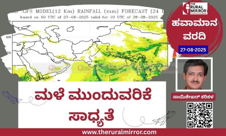28.08.2025ರ ಬೆಳಿಗ್ಗೆ 8 ಗಂಟೆವರೆಗಿನ ಕರ್ನಾಟಕದ ಹವಾಮಾನ ಮುನ್ಸೂಚನೆ :