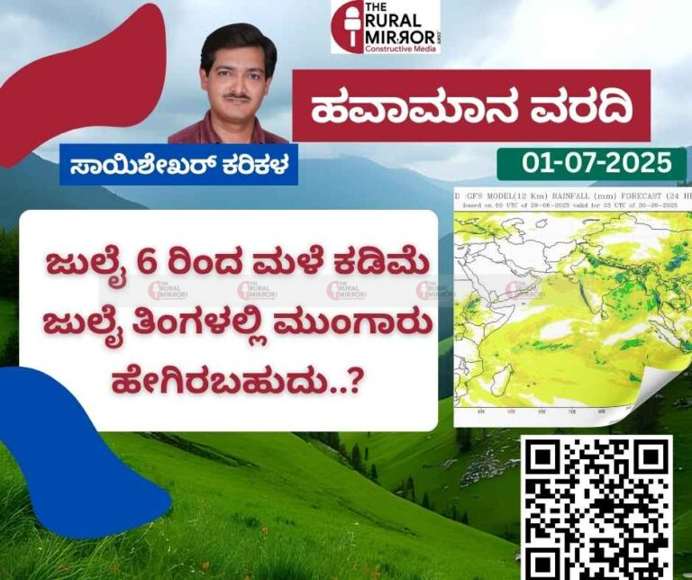 ರಾಜ್ಯದಲ್ಲಿ ಜುಲೈ ತಿಂಗಳಲ್ಲಿ ಮುಂಗಾರು ವಾಡಿಕೆಗಿಂತ ಕಡಿಮೆ ಇರುವ ಸಾಧ್ಯತೆಗಳಿವೆ. ಕರಾವಳಿ ಜಿಲ್ಲೆಗಳಲ್ಲಿ ಸರಾಸರಿ ಕಳೆದ 2023 ಹಾಗೂ 2024 ನೇ ಸಾಲಿನಲ್ಲಿ ಜುಲೈ 1700 mm ಗಿಂತಲೂ ಅಧಿಕ ಮಳೆಯಾಗಿತ್ತು. 2025ರ ಲ್ಲಿ ಸ್ವಲ್ಪ ಕಡಿಮೆ ಇರಬಹುದು.