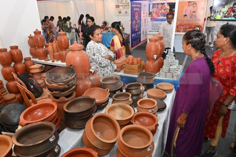 ಆಕರ್ಷಕ ಬಣ್ಣಗಳಿಂದ ಮಿಂಚುವ ಚನ್ನಪಟ್ಟಣದ ಗೊಂಬೆಗಳು, ಸೌಂದರ್ಯ ವಸ್ತುಗಳು, ಅಸ್ಸಾಂ, ತೆಲಂಗಾಣ, ಆಂಧ್ರಪ್ರದೇಶದ ಸೀರೆಗಳು, ಕೈಮಗ್ಗ ಸೀರೆಗಳು, ಸಿರಿಧಾನ್ಯ ಉತ್ಪನ್ನಗಳು, ಯುವತಿಯರ ಗಮನ ಸೆಳೆಯುವ ಕಿವಿಯೋಲೆಗಳು, ಮಣಿಸರಗಳು, ಖಾದಿ ಉತ್ಪನ್ನಗಳು, ಕೃತಕ ಆಭರಣಗಳು, ಮಡಿಕೆಗಳು ಪ್ರದರ್ಶನ ಮತ್ತು ಮಾರಾಟಕ್ಕಿಡಲಾಗಿದೆ.