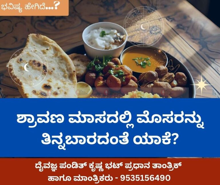 ಸಾರಾಂಶ: ಶ್ರಾವಣ ಮಾಸದಲ್ಲಿ ಮೊಸರು ತಿನ್ನದಿರುವುದು ದೈಹಿಕ ಆರೋಗ್ಯ, ಹೈಜೀನ್ ಮತ್ತು ಧಾರ್ಮಿಕ ಆಚರಣೆಗಳ ಬೆಂಬಲದಲ್ಲಿರುವ ಪರಂಪರೆಯ ಭಾಗ. ಈ ನಿಯಮಗಳನ್ನು ಅನುಸರಿಸುವ ಮೂಲಕ ಆರೋಗ್ಯದ ಜೊತೆಗೆ ಮನಃಶಾಂತಿಯೂ ಕೂಡ ಸಾಧಿಸಬಹುದು. ಇನ್ನು ಹೆಚ್ಚಿನ ಮಾಹಿತಿಗಾಗಿ ರಾಯರ ಪರಮಭಕ್ತರದ ಜ್ಯೋತಿಷಿಗಳನ್ನು ಸಂಪರ್ಕಿಸಿ 9535156490