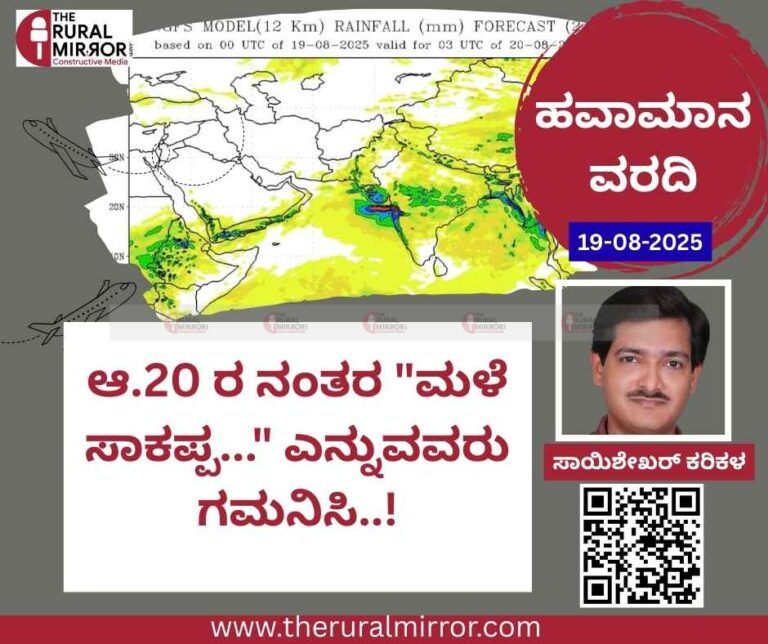 20.08.2025ರ ಬೆಳಿಗ್ಗೆ 8 ಗಂಟೆವರೆಗಿನ ಕರ್ನಾಟಕದ ಹವಾಮಾನ ಮುನ್ಸೂಚನೆ :…… ಮುಂದೆ ಓದಿ……
