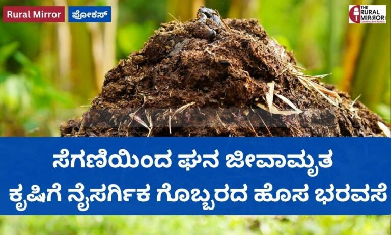 ಘನ ಜೀವಾಮೃತ ಎಂದರೇನು? : ಜೀವಾಮೃತ ಎಂದರೆ ದೇಶಿ ಹಸುವಿನ ಗೋಮಯ, ಗೋಮೂತ್ರ, ಬೆಲ್ಲ, ಕಡಲೆ ಹಿಟ್ಟು ಹಾಗೂ ಸ್ವಲ್ಪ ಮಣ್ಣನ್ನು ಸೇರಿಸಿ ತಯಾರಿಸುವ ಜೀವಂತ ಜೈವಿಕ ಗೊಬ್ಬರ. ಸಾಮಾನ್ಯವಾಗಿ ದ್ರವ ರೂಪದಲ್ಲಿ ಬಳಸುವ ಜೀವಾಮೃತ ಈಗ ಘನ ರೂಪದಲ್ಲೂ ತಯಾರಿಸಲಾಗುತ್ತಿದೆ. ಇದನ್ನು ರೈತರು ಸುಲಭವಾಗಿ ಸಂಗ್ರಹಿಸಿ ಬೆಳೆಗಳಿಗೆ ಬಳಸಬಹುದು. ಪ್ರತಿದಿನ ಕೃಷಿ-ಗ್ರಾಮೀಣ-ಪರಿಸರ ಹಾಗೂ ಇತರ ಮಾಹಿತಿಗಾಗಿ ನಮ್ಮ “ದ ರೂರಲ್ ಮಿರರ್.ಕಾಂ”WhatsApp Channel ಗೆ ಇಲ್ಲಿ ಕ್ಲಿಕ್ ಮಾಡಿ