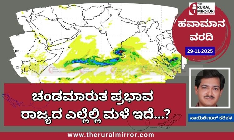 ಹವಾಮಾನ ವರದಿ | 29-11-2025 | ಚಂಡಮಾರುತ ಪ್ರಭಾವ – ರಾಜ್ಯದ ಎಲ್ಲೆಲ್ಲಿ ಮಳೆ ಇದೆ…?