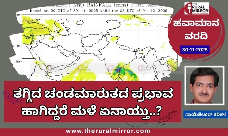 ಹವಾಮಾನ ವರದಿ | 30-11-2025 | ರಾಜ್ಯದಲ್ಲಿ ಚಂಡಮಾರುತದ ಪ್ರಭಾವ ಕಡಿಮೆಯಾಯ್ತು… ಹಾಗಿದ್ದರೆ ಮಳೆ ಏನಾಯ್ತು..?