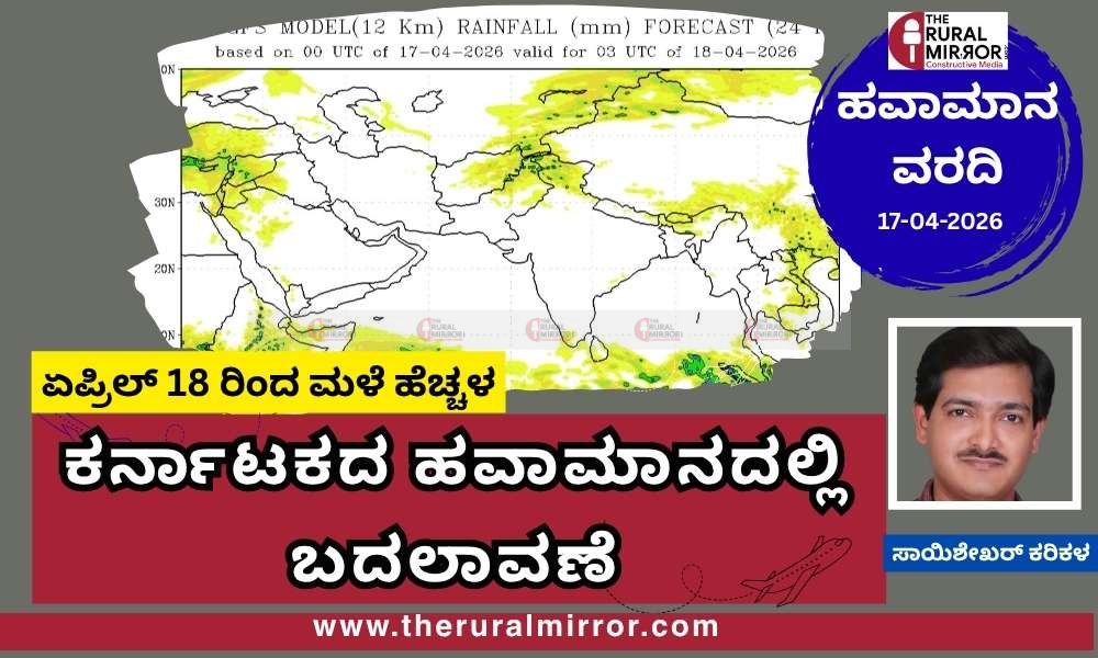 ಹವಾಮಾನ ವರದಿ | 17-04-2026 | ಕರ್ನಾಟಕದ ಹವಾಮಾನದಲ್ಲಿ ಬದಲಾವಣೆ – ಏಪ್ರಿಲ್ 18 ರಿಂದ ಮಳೆ ಹೆಚ್ಚಳ