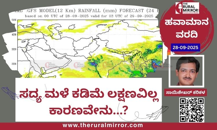 ಹವಾಮಾನ ವರದಿ | 28-09-2025 | ಸದ್ಯ ಮಳೆ ಲಕ್ಷಣವಿಲ್ಲ….ಕಾರಣವೇನು…?