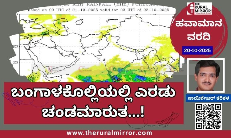 ಹವಾಮಾನ ವರದಿ | 21-10-2025 | ಬಂಗಾಳಕೊಲ್ಲಿಯಲ್ಲಿ 2 ಚಂಡಮಾರುತ | ಪ್ರಭಲ ಚಂಡಮಾರುತವಾದೀತೇ..?
