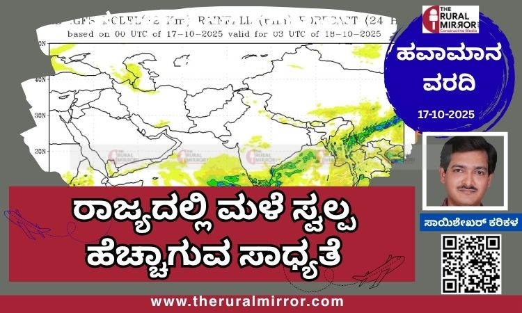 ಹವಾಮಾನ ವರದಿ | 17-10-2025 | ರಾಜ್ಯದ ಎಲ್ಲೆಲ್ಲಾ ಗುಡುಗು ಮಳೆ ? ರಾಜ್ಯದಲ್ಲಿ ಮಳೆಯ ಪ್ರಮಾಣ ಸ್ವಲ್ಪ ಹೆಚ್ಚಾಗುವ ಸಾಧ್ಯತೆ