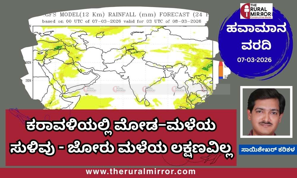 ಹವಾಮಾನ ವರದಿ | 07-03-2026 | ಕರಾವಳಿಯಲ್ಲಿ ಮೋಡ–ಮಳೆಯ ಸುಳಿವು | ಜೋರು ಮಳೆಯ ಲಕ್ಷಣವಿಲ್ಲ