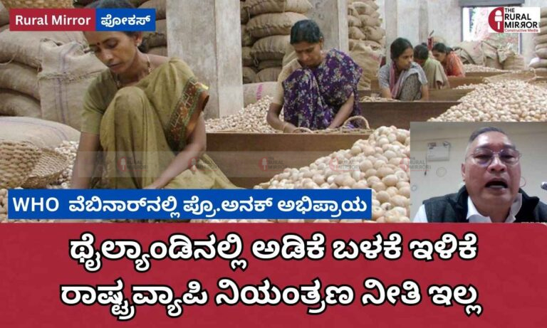 ಆಗ್ನೇಯ ಏಷ್ಯಾದಲ್ಲಿ ಅಡಿಕೆ ಬಳಕೆಯಿಂದ ಉಂಟಾಗುತ್ತಿರುವ ಆರೋಗ್ಯ ಅಪಾಯಗಳ ಕುರಿತು ವಿಶ್ವ ಆರೋಗ್ಯ ಸಂಸ್ಥೆ (WHO) ಆಯೋಜಿಸಿದ್ದ ವೆಬಿನಾರ್ನಲ್ಲಿ, ಥೈಲ್ಯಾಂಡಿನ ತಜ್ಞರು ಅಡಿಕೆ ಬಳಕೆ ನಿಯಂತ್ರಣದ ಬಗ್ಗೆ…