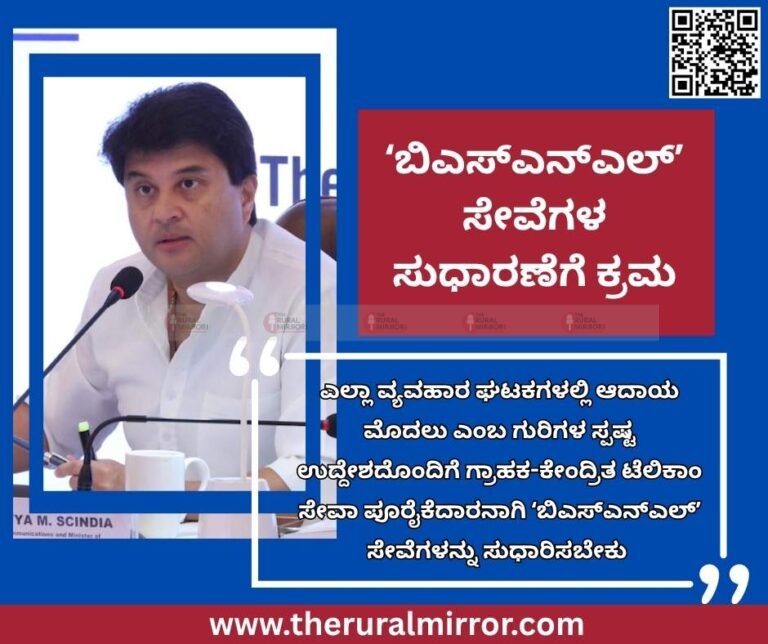 ಕೇಂದ್ರ ಸಂವಹನ ಸಚಿವ ಜ್ಯೋತಿರಾದಿತ್ಯ ಸಿಂಧಿಯಾ, ದೆಹಲಿಯಲ್ಲಿ ʻಭಾರತ್ ಸಂಚಾರ್ ನಿಗಮ್ ಲಿಮಿಟೆಡ್ʼನ- ಬಿಎಸ್ಎನ್ಎಲ್ (BSNL) ಮುಖ್ಯ ಪ್ರಧಾನ ವ್ಯವಸ್ಥಾಪಕರೊಂದಿಗೆ ನಿನ್ನೆ ಪರಿಶೀಲನಾ ಸಭೆ ನಡೆಸಿದರು. ಈ…