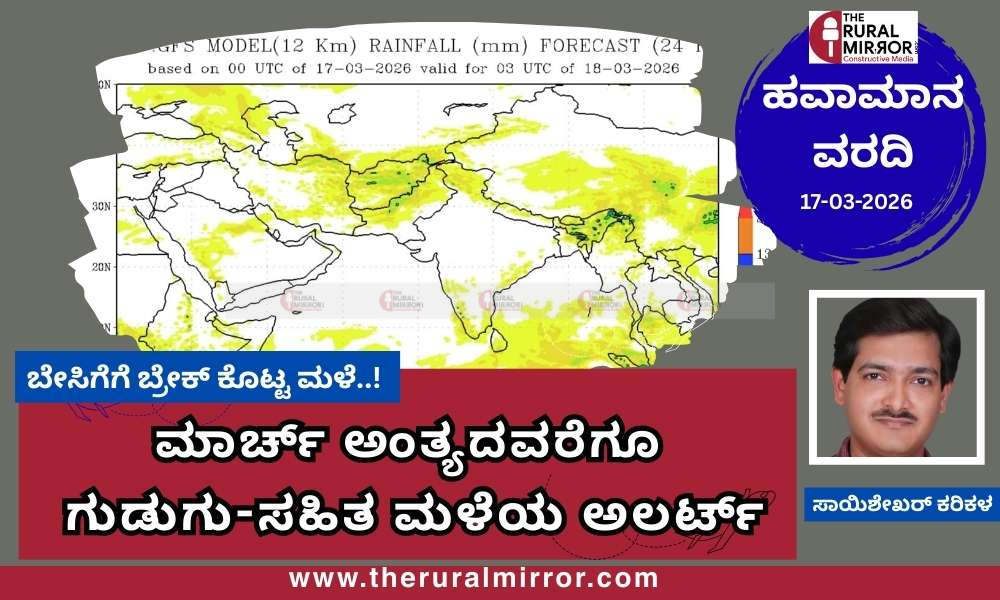 ಹವಾಮಾನ ವರದಿ | 17-03-2026 | ಬೇಸಿಗೆಗೆ ಬ್ರೇಕ್ ಕೊಟ್ಟ ಮಳೆ..! ಮಾರ್ಚ್ ಅಂತ್ಯದವರೆಗೂ ರಾಜ್ಯದ ಹಲವೆಡೆ ಗುಡುಗು-ಸಹಿತ ಮಳೆಯ ಅಲರ್ಟ್
