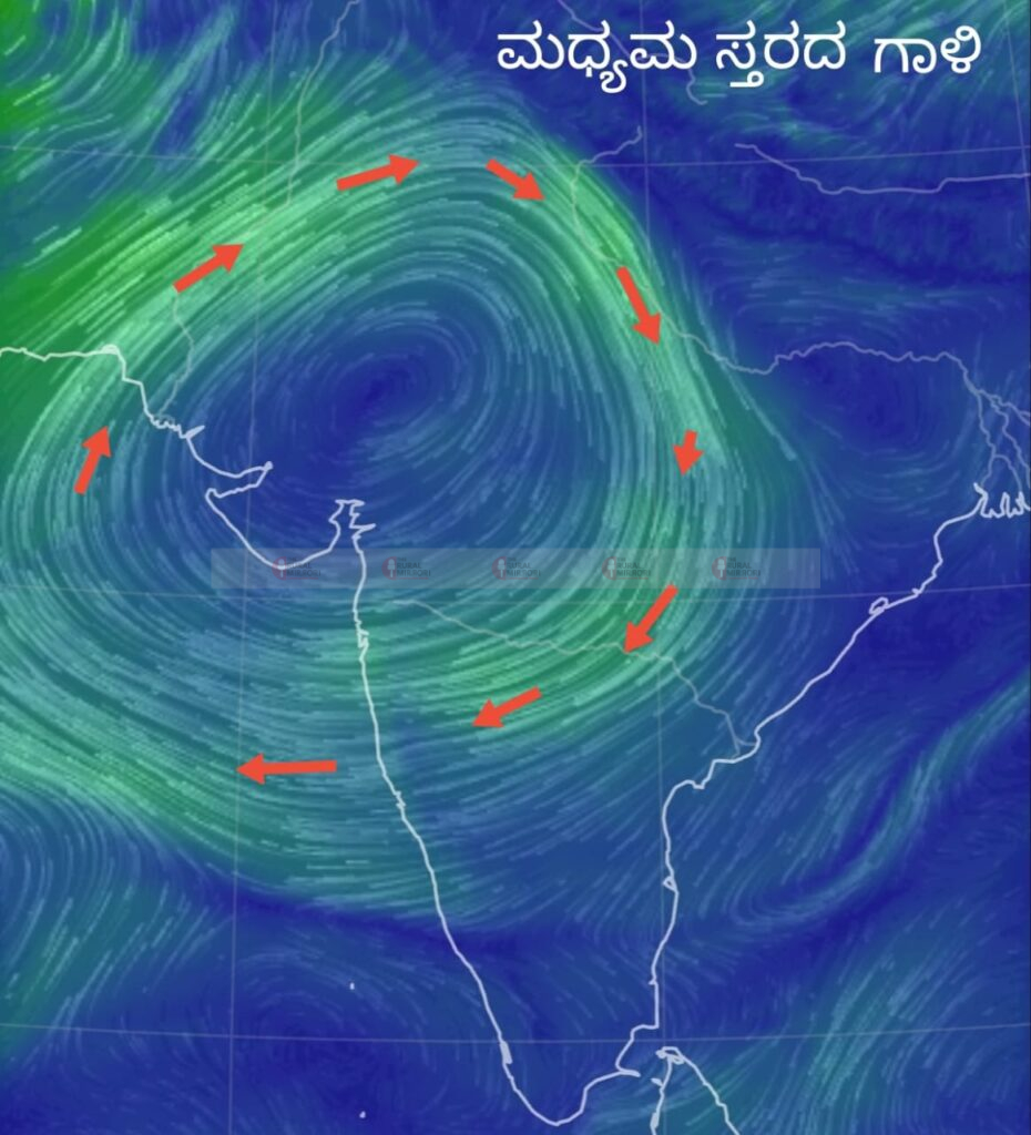 ಮಧ್ಯಮ ಸ್ತರದ ಗಾಳಿಯು ಗುಜರಾತ್ ಹಾಗೂ ರಾಜಸ್ಥಾನ ಕೇಂದ್ರಿಕರಿಸಿಕೊಂಡು ಬೃಹತ್ ಗಾತ್ರದಲ್ಲಿ ಅಸ್ವಾಭಾವಿಕ ತಿರುಗುವಿಕೆಯ ಪರಿಣಾಮದಿಂದ ಉತ್ತರ ಭಾರತದ ಕಡೆಯಿಂದ ಶೀತ ಮಾರುತಗಳು ದಕ್ಷಿಣದ ಕಡೆಗೆ ಬಲವಾಗಿ ಬೀಸುತ್ತಿದೆ ಹಾಗೂ ರಾಜ್ಯದ ವಾತಾವರಣದ ಉಷ್ಣಾಂಶ ತೀವ್ರವಾಗಿ ಕುಸಿದಿದೆ. ಪ್ರತಿದಿನ ಕೃಷಿ-ಗ್ರಾಮೀಣ-ಪರಿಸರ ಹಾಗೂ ಇತರ ಮಾಹಿತಿಗಾಗಿ ನಮ್ಮ “ದ ರೂರಲ್ ಮಿರರ್.ಕಾಂ”WhatsApp Channel ಗೆ ಇಲ್ಲಿ ಕ್ಲಿಕ್ ಮಾಡಿ.