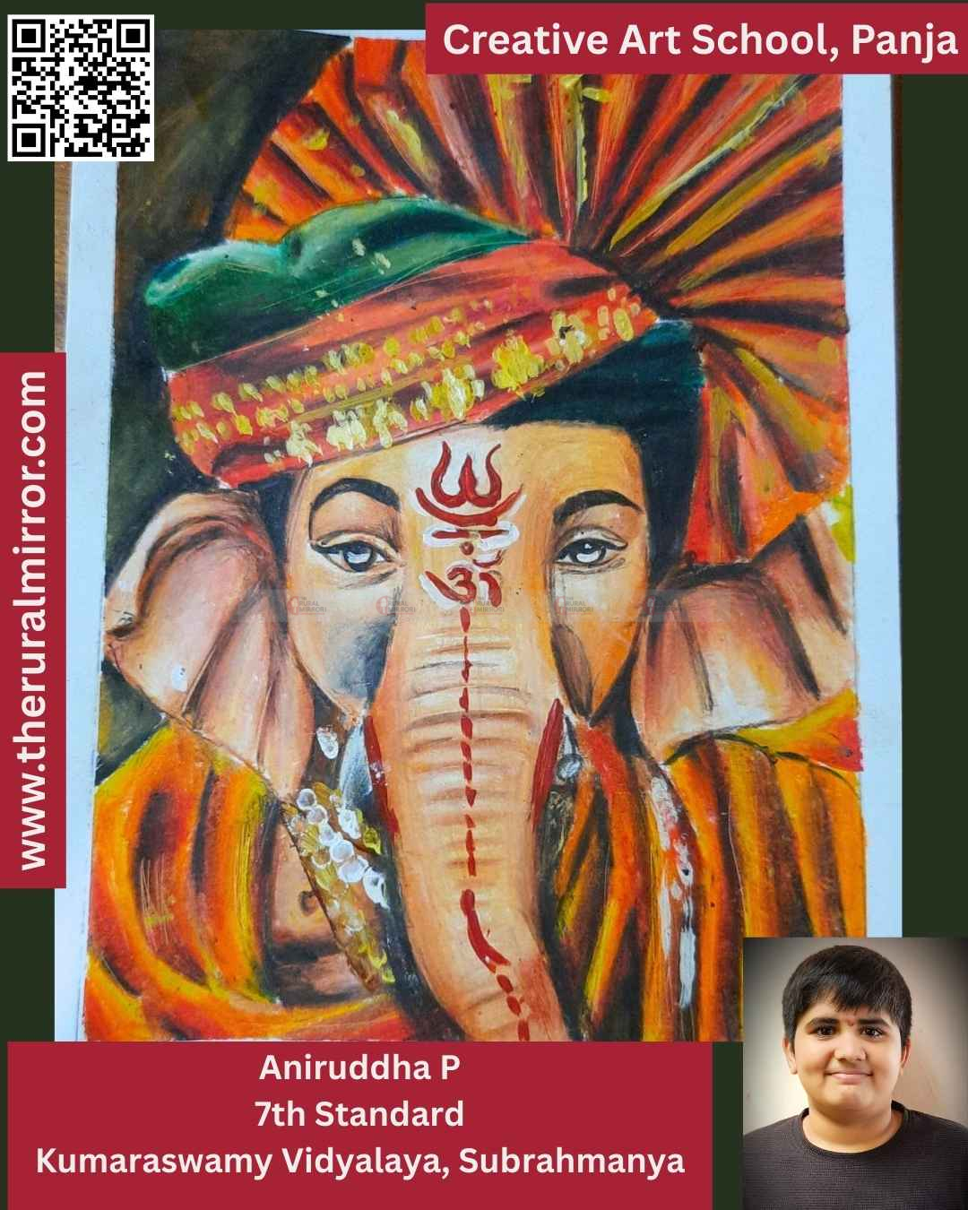 ಅನಿರುದ್ಧ ಪಿ, 7 ನೇ ತರಗತಿ, ಕುಮಾರಸ್ವಾಮಿ ವಿದ್ಯಾಲಯ, ಸುಬ್ರಹ್ಮಣ್ಯ | – ದ ರೂರಲ್ ಮಿರರ್.ಕಾಂ | ಪ್ರತಿದಿನ ಕೃಷಿ-ಗ್ರಾಮೀಣ-ಪರಿಸರ ಹಾಗೂ ಇತರ ಮಾಹಿತಿ ಮತ್ತು ನ್ಯೂಸ್ ಎಲರ್ಟ್ ಗಾಗಿ ನಮ್ಮ “ದ ರೂರಲ್ ಮಿರರ್.ಕಾಂ”WhatsApp Channel ಗೆ ಇಲ್ಲಿ ಕ್ಲಿಕ್ ಮಾಡಿ ಸೇರಿಕೊಳ್ಳಿ…. ಸರ್ವರಿಗೂ ಗಣೇಶೋತ್ಸವ ಶುಭಾಶಯಗಳು